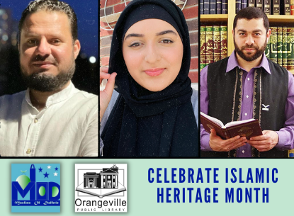Join the Orangeville Public Library and the Muslims of Dufferin as they celebrate Islamic Heritage Month. Community members of all ages and backgrounds are invited to listen to an informative panel discussion featuring speakers from the Muslim community: