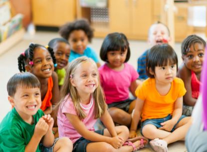 Group of preschool children listening to story