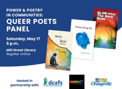 The Orangeville Public Library and DCAFS 2SLGBTQ+ Youth Group GLOW celebrates the International Day Against Homophobia, Transphobia and Biphobia on May 17 with a poetry panel.