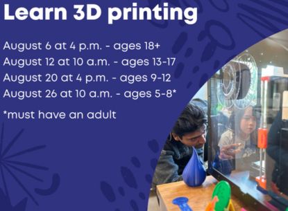 Teens are invited to join us for a preview of our Makerspace with a focus on our 3D printer.