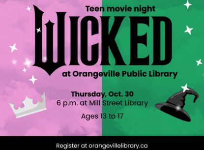 Something Wicked is coming to the Orangeville Public Library! Join us at for a special screening of Wicked! Teens ages 13-17 can see the story of Glinda and Elphaba before Dorothy ever followed the yellow brick road....just in time to get hyped for part two, Wicked: For Good, hitting theatres this fall. Bring a friend, enjoy some yummy snacks, and find out why sometimes being "wicked" isn't so bad.